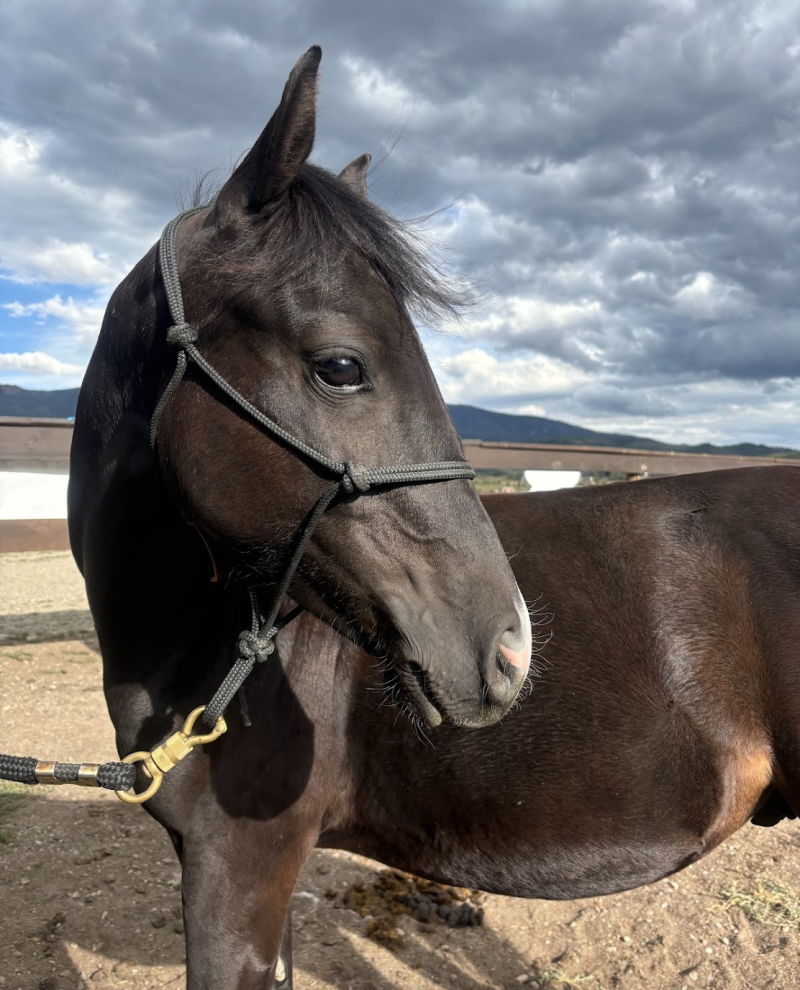 Baby J, (formerly Justus) is Ebony's foal, born at Next Step Horse Rescue. He is cute as can be. He's a Yakima mustang, QH cross. Adopted in August 2024, Baby J is back at Summit Valley Horse Center, playing with all the other youngsters and being tenderly looked after by Big Ernie.